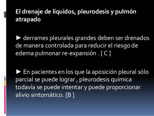 Derrame pleural maligno; patogénesis y las causas de pleural. El diagnóstico de maligno derrame pleural adecuado debido a que es importante en el pronóstico y el tratamiento son diferentes que para pleural no maligno. Incluso si el cáncer hasta el 50% de la pleuresía son benignos. Derrame pleural medlineplus enciclopedia médica. Este es el tejido delgado que recubre la cavidad torácica y rodea los pulmones. Un derrame pleural es una acumulación anormal y excesiva de este líquido. Hay dos tipos de derrame el derrame pleural transudativo es causado por líquido que se filtra hacia el espacio pleural. Derrame pleural síntomas, causas y tratamiento. El derrame pleural que se manifiesta con un tipo exudado normalmente se produce por la inflamación de la pleura y puede ser causado por varios grupos diferentes de enfermedades, incluyendo infecciones, enfermedades sistémicas y cánceres. Las enfermedades más comunes que causan derrame pleural exudativo son neumonía. Tuberculosis. Derrame pleural sintomas signs and treatment. Healthcareknow has been visited by 1m+ users in the past month. Derrame pleural maligno sintomas image results. More derrame pleural maligno sintomas images. Derrame pleural causas y síntomas fisioterapiaparatodos. El derrame pleural es una enfermedad que se manifiesta mediante la acumulación de una cantidad excesiva de líquido en la cavidad pleural. El espacio entre la pared torácica y los pulmones, donde se acumula el líquido, se llama espacio o cavidad pleural.